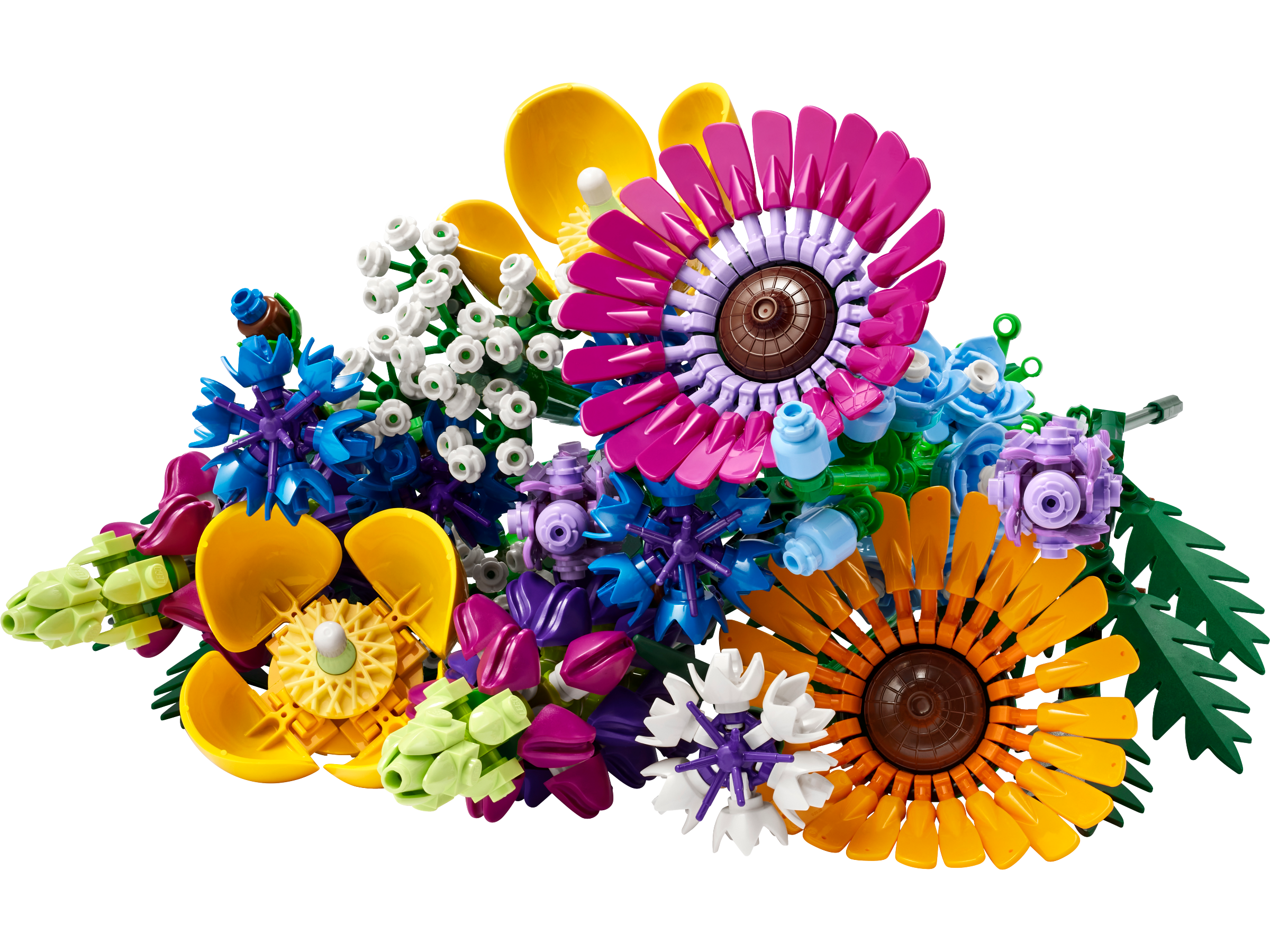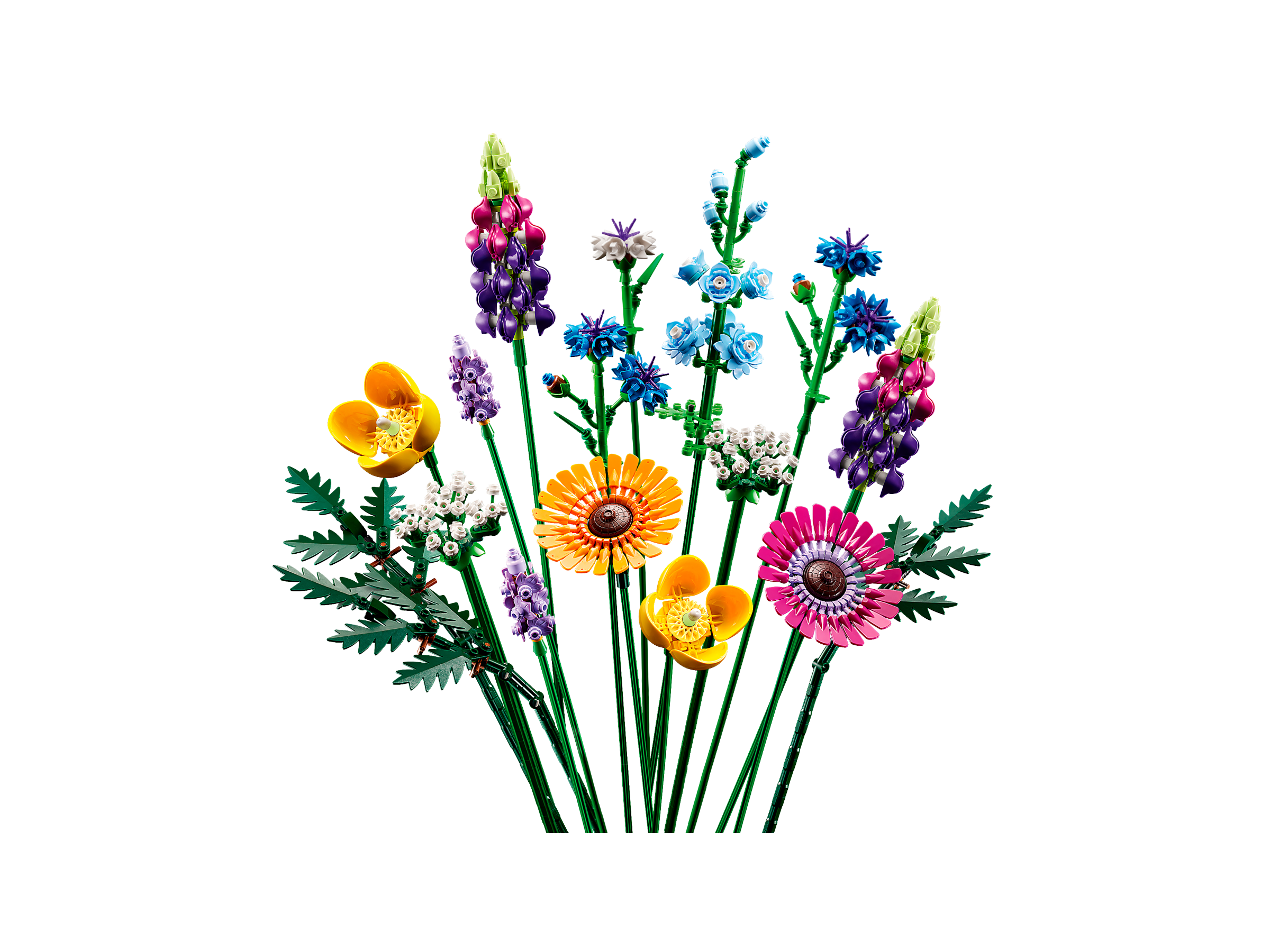 Der Wildblumenstrauß besteht aus aufwendig zusammengefügten LEGO Teilen, die 8 Wildblumenarten mit verstellbaren Stängeln darstellen. Aufstrebende Floristinnen und Blumenliebhaber können sich viele Stunden damit beschäftigen, die Blüten zu bauen und zu identifizieren, denen echte Kornblumen, Lavendel, Wald-Scheinmohn, Wiesenkerbel, Lederfarne, Gerbera-Gänseblümchen, Rittersporn und Lupinen als Vorlage dienten. Die fertigen LEGO Blumen kann man in seine Lieblingsvase stellen, um einen echten Hingucker zu erschaffen, der in jedem Zimmer große Freude bereiten wird.